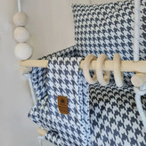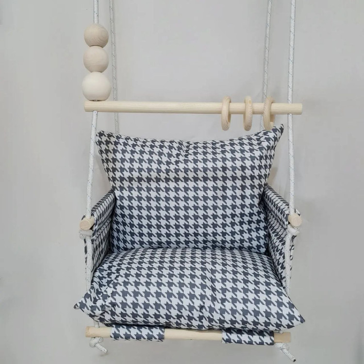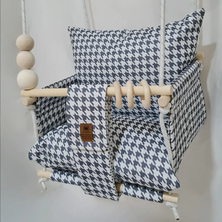 تاب کودک ام دی سری مبله کامل مدل راشین، وسیله ای سرگرم کننده و جذاب برای کودکان در محیط خانه و فضای باز است. یکی از بهترین بازی ها برای بچه ها، تاب بازی در منزل است که باعث احساس آرامش و لذت کودکان میشود. (از این تاب میتوانید در فضای باز و طبیعت هم استفاده کنید.) این تاب قابل نصب به میله بارفیکس و یا بست های سقفی می باشد. پارچه ی استفاده شده در این محصول از نوع پارچههای با کیفیت مبلی ترک (تمام نخ – ضد آلرژی) می باشد؛ همچنین از چوب طبیعی روسی باکیفیت بدون لبه های تیز استفاده شده است. فضای نشیمن کودک داخل تاب حدود 40 سانت در 40 سانت است وزن قابل تحمل تاب ام دی 35 کیلوگرم می باشد و مناسب کودکان بالای 6 ماه است. همچنین جهت سهولت کار والدین به هنگام قرار دادن کودک در تاب، قسمت پشتی با بند و دکمه به بنده اصلی تاب متصل شده است. در بستهی این محصول به جهت سرگرم شدن کودک تعدادی استوانهی چوبی و حلقه بسیار مستحکم از مغز تنهی درخت قرار داده شده است. این تاب به صورت مونتاژ شده و در کاور مخصوص حمل برای مشتریان عزیز ارسال می گردد.