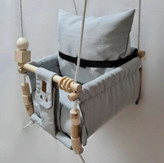 تاب کودک ام دی سری مبله کامل مدل دلینا، وسیله ای سرگرم کننده و جذاب برای کودکان در محیط خانه و فضای باز است. یکی از بهترین بازی ها برای بچه ها، تاب بازی در منزل است که باعث احساس آرامش و لذت کودکان میشود. (از این تاب میتوانید در فضای باز و طبیعت هم استفاده کنید.) این تاب قابل نصب به میله بارفیکس و یا بست های سقفی می باشد. پارچه ی استفاده شده در این محصول از نوع پارچههای با کیفیت مبلی ترک (تمام نخ – ضد آلرژی) برای بدنه اصلی و پارچه مبلی ترک برای تشکچه ها می باشد؛ همچنین از چوب طبیعی روسی باکیفیت بدون لبه های تیز استفاده شده است. فضای نشیمن کودک داخل تاب حدود 40 سانت در 40 سانت است وزن قابل تحمل تاب ام دی 35 کیلوگرم می باشد و مناسب همه کودکانی که توانایی نشستن را دارند می باشد. هچنین سهولت در نشستن کودک قسمت کوسن پشتی به وسیله دکمه ای به بدنه اصلی متصل شده است و هر دو تشکچه به جهت شستشوی راحت تر دارای زیپ هستند. این مدل جهت حفظ ایمنی بیشتر مجهز به کمربند شده است. در بستهی این محصول به جهت سرگرم شدن کودک آویز هایی از مغز تنه درختان قرار داده شده است. این تاب به صورت مونتاژ شده و در کاور مخصوص برای مشتریان عزیز ارسال می گردد.