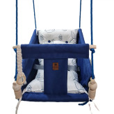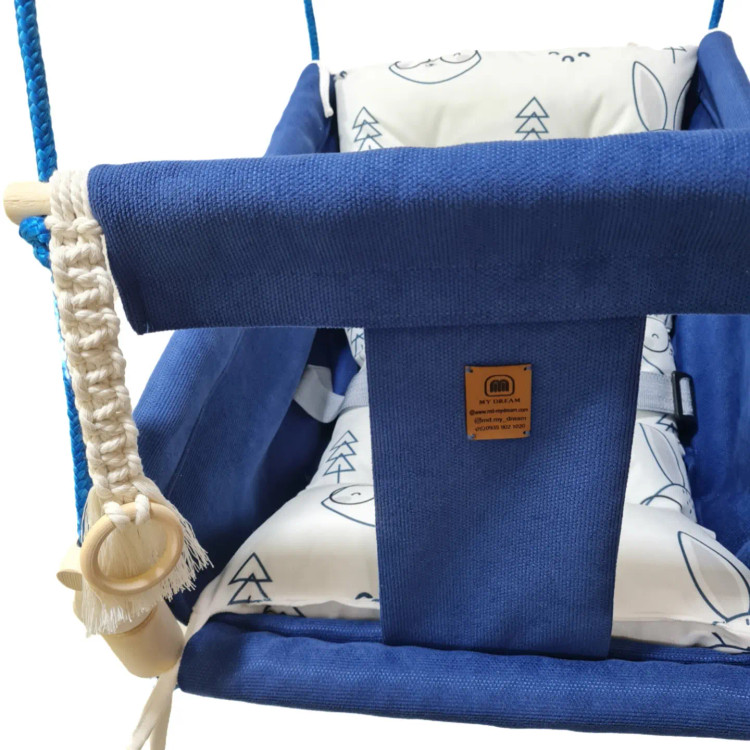 تاب کودک ام دی سری ننوئی مدل ماه نیکا، وسیله ای سرگرم کننده و جذاب برای کودکان در محیط خانه و فضای باز است. یکی از بهترین بازی ها برای بچه ها، تاب بازی در منزل است که باعث احساس آرامش و لذت کودکان میشود. (از این تاب میتوانید در فضای باز و طبیعت هم استفاده کنید.) این تاب قابل نصب به میله بارفیکس و یا بست های سقفی می باشد. پارچه ی استفاده شده در این محصول از نوع پارچههای با کیفیت مبلی ترک (تمام نخ – ضد آلرژی) برای بدنه اصلی و پارچه مخمل پورشه برای تشکچه ها می باشد؛ همچنین از چوب طبیعی روسی باکیفیت بدون لبه های تیز استفاده شده است. فضای نشیمن کودک داخل تاب حدود 40 سانت در 60 سانت است وزن قابل تحمل تاب ام دی 45 کیلوگرم می باشد و مناسب همه کودکان از بدو تولد می باشد که با تنظیم طناب های پشتی به سه حالت خوابیده، لمیده و نشسته در می آید. همچنین قسمت تشکچه با چهار عدد بند در چهار جهت به بنده اصلی متصل می گردد. در بستهی این محصول به جهت سرگرم شدن کودک آویز مکرومه ای قرار داده شده است. این تاب به صورت مونتاژ شده و در کاور مخصوص برای مشتریان عزیز ارسال می گردد.