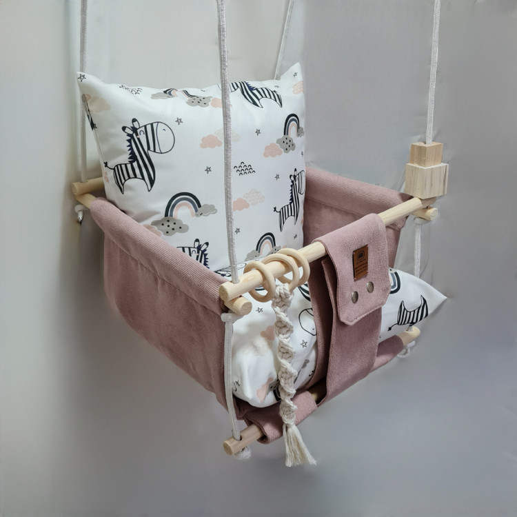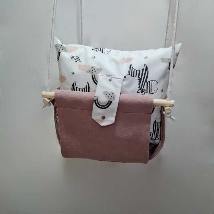تاب کودک ام دی سری مبله کامل مدل ارشا، وسیله ای سرگرم کننده و جذاب برای کودکان در محیط خانه و فضای باز است. یکی از بهترین بازی ها برای بچه ها، تاب بازی در منزل است که باعث احساس آرامش و لذت کودکان میشود. (از این تاب میتوانید در فضای باز و طبیعت هم استفاده کنید.) این تاب قابل نصب به میله بارفیکس و یا بست های سقفی می باشد. پارچه ی استفاده شده در این محصول از نوع پارچههای با کیفیت مبلی ترک (تمام نخ – ضد آلرژی) برای بدنه اصلی و پارچه مخمل پورشه برای تشکچه ها می باشد؛ همچنین از چوب طبیعی روسی باکیفیت بدون لبه های تیز استفاده شده است. فضای نشیمن کودک داخل تاب حدود 40 سانت در 40 سانت است وزن قابل تحمل تاب ام دی 35 کیلوگرم می باشد و مناسب همه کودکانی که توانایی نشستن را دارند می باشد. هچنین سهولت در نشستن کودک قسمت کوسن پشتی به وسیله دکمه ای به بدنه اصلی متصل شده است و هر دو تشکچه به جهت شستشوی راحت تر دارای زیپ هستند. در بستهی این محصول به جهت سرگرم شدن کودک آویز هایی از مغز تنه درختان و آویز مکرومه ای قرار داده شده است. این تاب به صورت مونتاژ شده و در کاور مخصوص برای مشتریان عزیز ارسال می گردد.