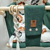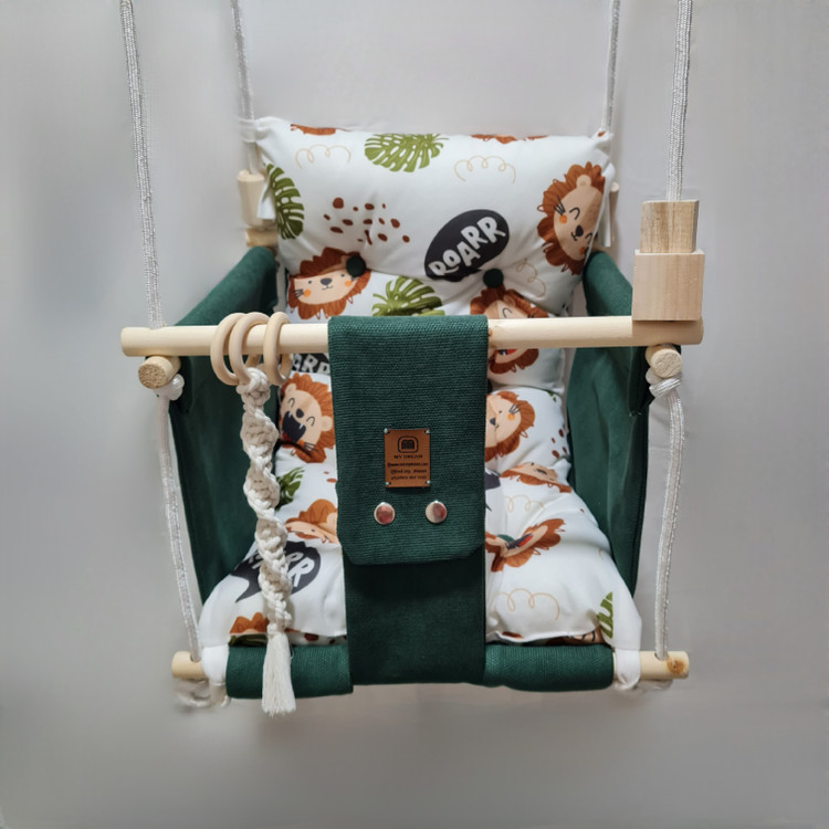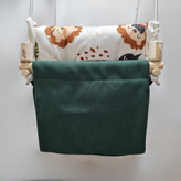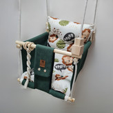 تاب کودک ام دی سری مبله کامل مدل آریانا، وسیله ای سرگرم کننده و جذاب برای کودکان در محیط خانه و فضای باز است. یکی از بهترین بازی ها برای بچه ها، تاب بازی در منزل است که باعث احساس آرامش و لذت کودکان میشود. (از این تاب میتوانید در فضای باز و طبیعت هم استفاده کنید.) این تاب قابل نصب به میله بارفیکس و یا بست های سقفی می باشد. پارچه ی استفاده شده در این محصول از نوع پارچههای با کیفیت مبلی ترک (تمام نخ – ضد آلرژی) برای بدنه اصلی و پارچه مخمل پورشه برای تشکچه ها می باشد؛ همچنین از چوب طبیعی روسی باکیفیت بدون لبه های تیز استفاده شده است. فضای نشیمن کودک داخل تاب حدود 40 سانت در 40 سانت است وزن قابل تحمل تاب ام دی 35 کیلوگرم می باشد و مناسب همه کودکانی که توانایی نشستن را دارند می باشد. هچنین سهولت در نشستن کودک قسمت کوسن پشتی به وسیله بندک هایی به بدنه اصلی متصل شده است، در این مدل جهت راحتی بیشتر تشکچه بصورت یکپارچه طراحی شده است و همچنین دکمه دوزی تشکچه باعث جلوه زیباتری در این تاب شده است. در بستهی این محصول به جهت سرگرم شدن کودک آویز هایی از مغز تنه درختان و آویز مکرومه ای قرار داده شده است. این تاب به صورت مونتاژ شده و در کاور مخصوص برای مشتریان عزیز ارسال می گردد.