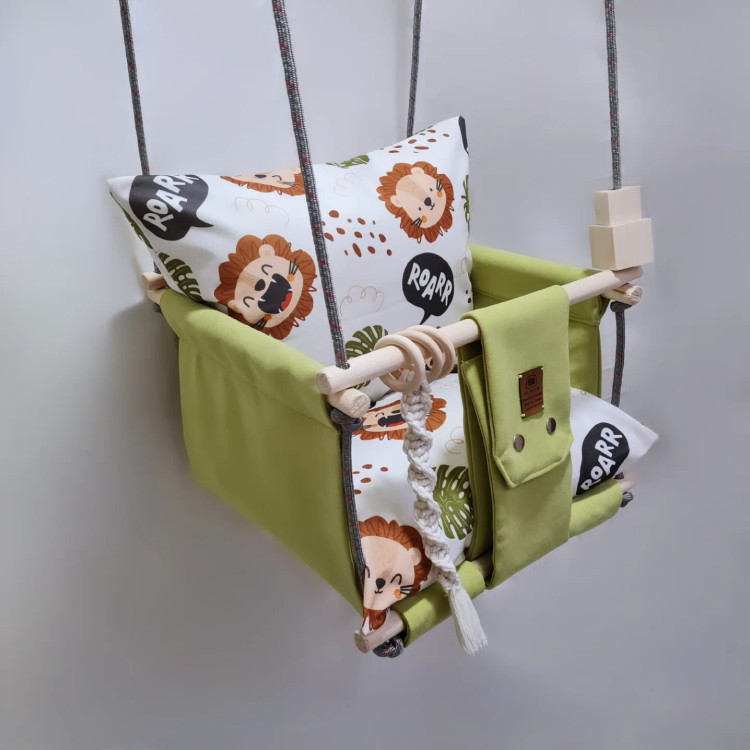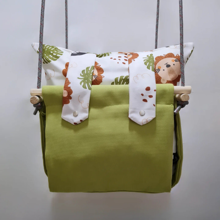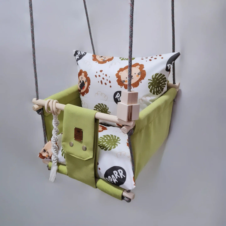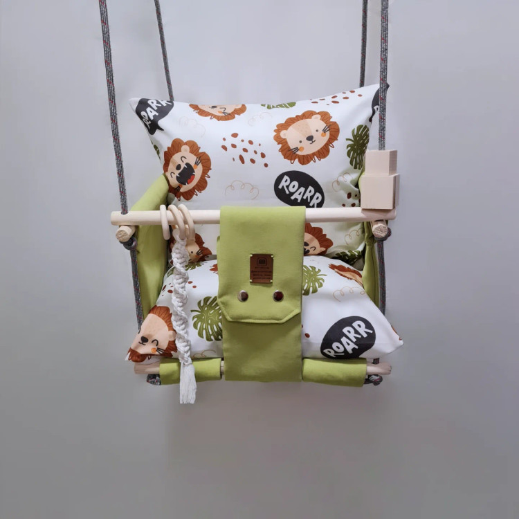 تاب کودک ام دی سری مبله کامل مدل چاوان، وسیله ای سرگرم کننده و جذاب برای کودکان در محیط خانه و فضای باز است. یکی از بهترین بازی ها برای بچه ها، تاب بازی در منزل است که باعث احساس آرامش و لذت کودکان میشود. (از این تاب میتوانید در فضای باز و طبیعت هم استفاده کنید.) این تاب قابل نصب به میله بارفیکس و یا بست های سقفی می باشد. پارچه ی استفاده شده در این محصول از نوع پارچههای با کیفیت مبلی ترک (تمام نخ – ضد آلرژی) برای بدنه اصلی و پارچه مخمل پورشه برای تشکچه ها می باشد؛ همچنین از چوب طبیعی روسی باکیفیت بدون لبه های تیز استفاده شده است. فضای نشیمن کودک داخل تاب حدود 40 سانت در 40 سانت است وزن قابل تحمل تاب ام دی 35 کیلوگرم می باشد و مناسب همه کودکانی که توانایی نشستن را دارند می باشد. هچنین سهولت در نشستن کودک قسمت کوسن پشتی به وسیله دکمه ای به بدنه اصلی متصل شده است و هر دو تشکچه به جهت شستشوی راحت تر دارای زیپ هستند. در بستهی این محصول به جهت سرگرم شدن کودک آویز هایی از مغز تنه درختان و آویز مکرومه ای قرار داده شده است. این تاب به صورت مونتاژ شده و در کاور مخصوص برای مشتریان عزیز ارسال می گردد.