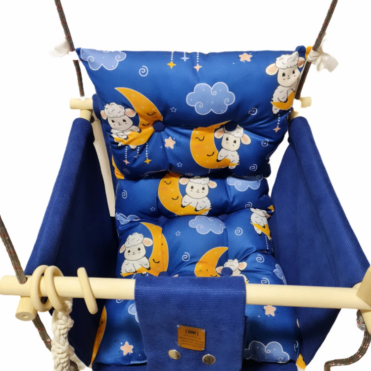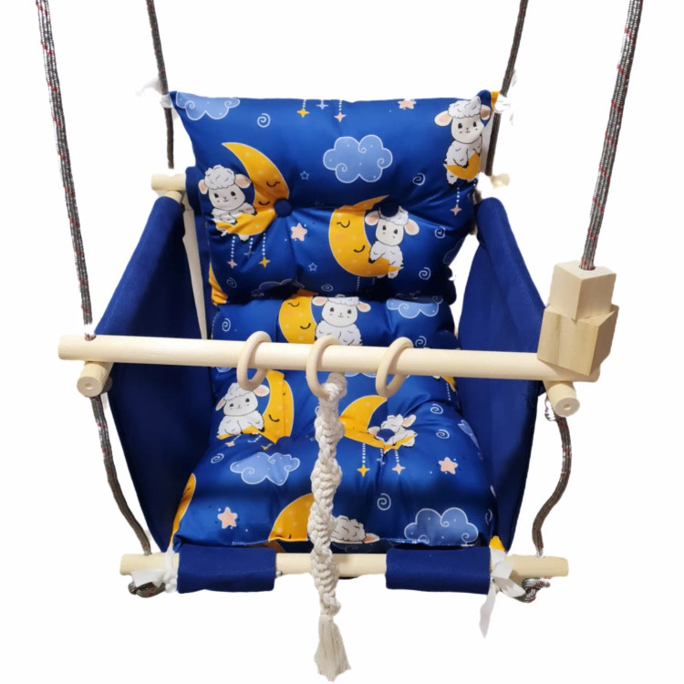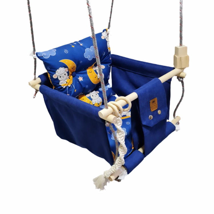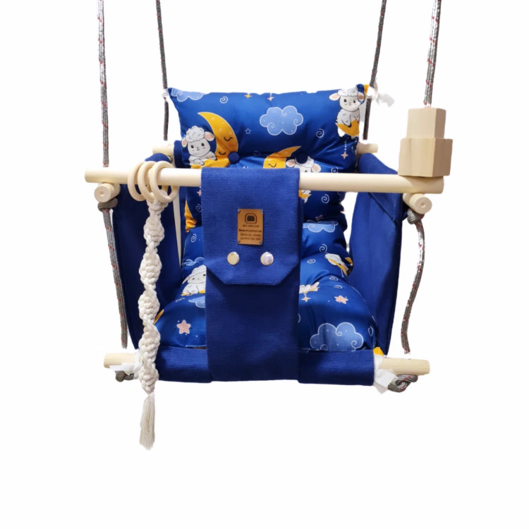 تاب کودک ام دی سری مبله کامل مدل مهرسام(کوسن یکپارچه) ، وسیله ای سرگرم کننده و جذاب برای کودکان در محیط خانه و فضای باز است. یکی از بهترین بازی ها برای بچه ها، تاب بازی در منزل است که باعث احساس آرامش و لذت کودکان میشود. (از این تاب میتوانید در فضای باز و طبیعت هم استفاده کنید.) این تاب قابل نصب به میله بارفیکس و یا بست های سقفی می باشد. پارچه ی استفاده شده در این محصول از نوع پارچههای با کیفیت مبلی ترک (تمام نخ – ضد آلرژی) برای بدنه اصلی و پارچه مخمل پورشه برای تشکچه ها می باشد؛ همچنین از چوب طبیعی روسی باکیفیت بدون لبه های تیز استفاده شده است. فضای نشیمن کودک داخل تاب حدود 40 سانت در 40 سانت است وزن قابل تحمل تاب ام دی 35 کیلوگرم می باشد و مناسب همه کودکانی که توانایی نشستن را دارند می باشد. هچنین سهولت در نشستن کودک قسمت کوسن پشتی به وسیله بندک هایی به بدنه اصلی متصل شده است، در این مدل جهت راحتی بیشتر تشکچه بصورت یکپارچه طراحی شده است و همچنین دکمه دوزی تشکچه باعث جلوه زیباتری در این تاب شده است. در بستهی این محصول به جهت سرگرم شدن کودک آویز هایی از مغز تنه درختان و آویز مکرومه ای قرار داده شده است. این تاب به صورت مونتاژ شده و در کاور مخصوص برای مشتریان عزیز ارسال می گردد.