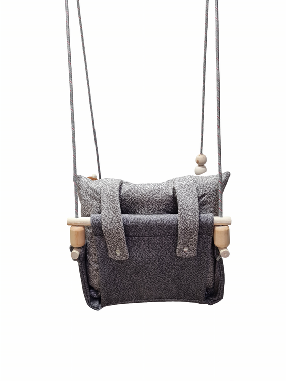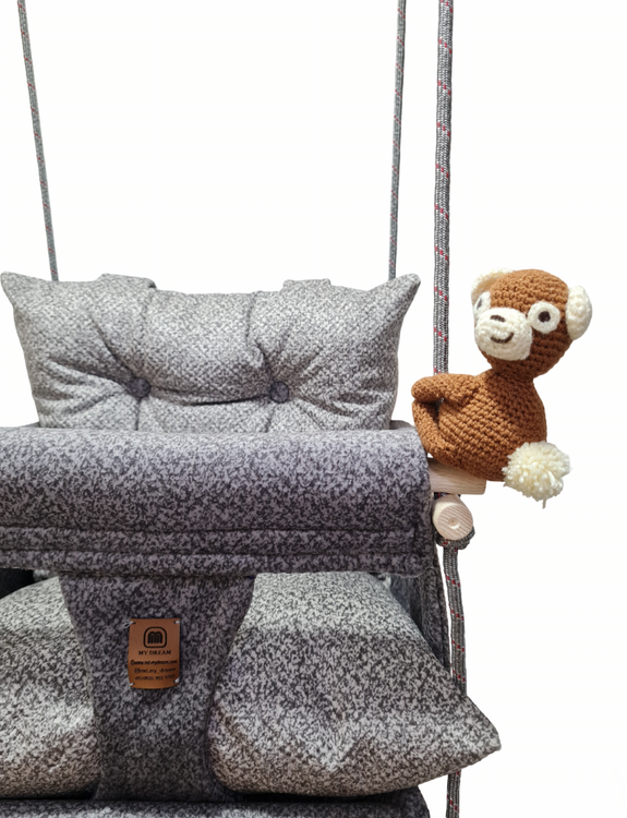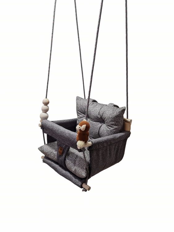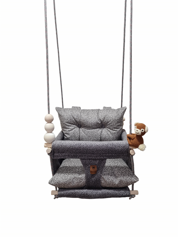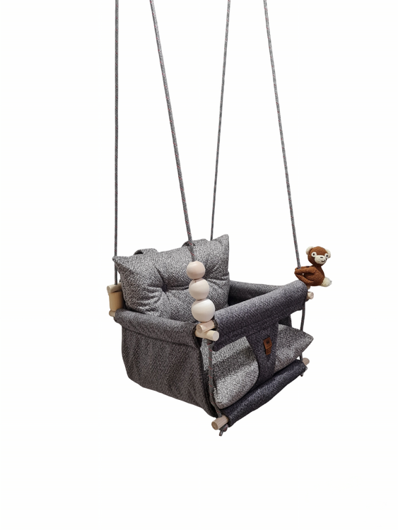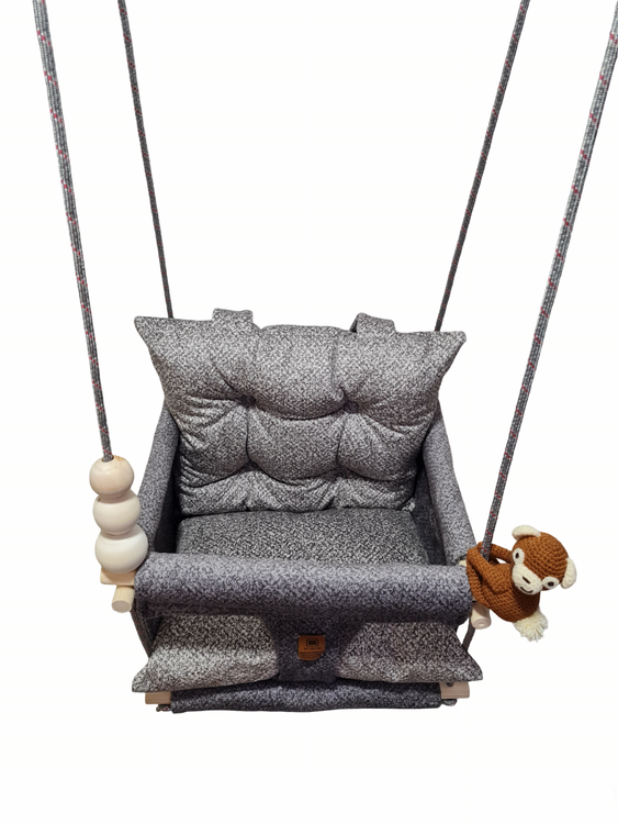 تاب کودک ام دی سری مبله لاکچری مدل دارا، وسیله ای سرگرم کننده و جذاب برای کودکان در محیط خانه و فضای باز است. یکی از بهترین بازی ها برای بچه ها، تاب بازی در منزل است که باعث احساس آرامش و لذت کودکان میشود. (از این تاب میتوانید در فضای باز و طبیعت هم استفاده کنید.) این تاب قابل نصب به میله بارفیکس و یا بست های سقفی می باشد. پارچه ی استفاده شده در این محصول از نوع پارچههای با کیفیت مبلی ترک (تمام نخ – ضد آلرژی) می باشد، همچنین از چوب طبیعی روسی باکیفیت بدون لبه های تیز استفاده شده است. فضای نشیمن کودک داخل تاب حدود 40 سانت در 40 سانت است وزن قابل تحمل تاب ام دی ۴۰ کیلوگرم می باشد و مناسب همه کودکانی که توانایی نشستن را دارند می باشد. هچنین سهولت در نشستن کودک قسمت کوسن پشتی به وسیله دو دکمه به بدنه اصلی متصل شده است. در بستهی این محصول به جهت سرگرم شدن کودک آویز هایی از مغز تنه درختان و عروسک زیبایی که کار دست می باشد تعبیه شده است. این تاب به صورت مونتاژ شده و در کاور مخصوص برای مشتریان عزیز ارسال می گردد.