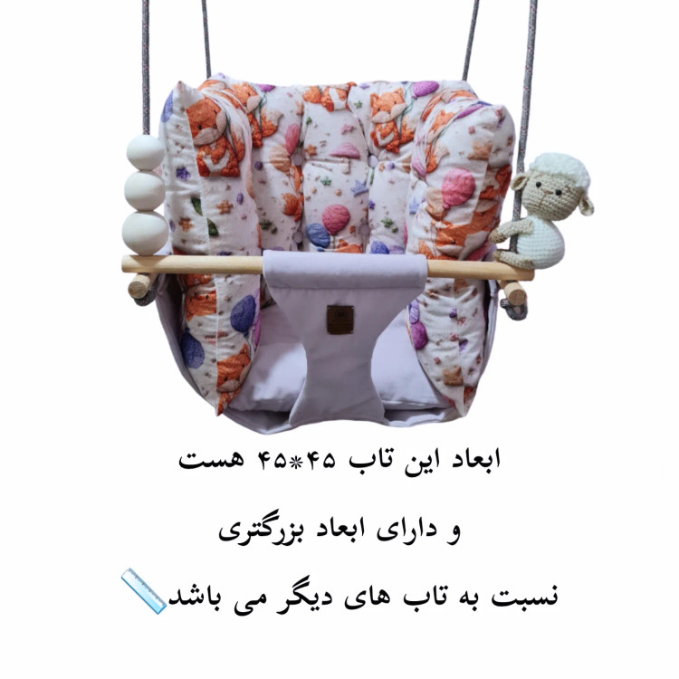تاب کودک ام دی سری مبله لاکچری مدل سارا، وسیله ای سرگرم کننده و جذاب برای کودکان در محیط خانه و فضای باز است. یکی از بهترین بازی ها برای بچه ها، تاب بازی در منزل است که باعث احساس آرامش و لذت کودکان میشود. (از این تاب میتوانید در فضای باز و طبیعت هم استفاده کنید.) این تاب قابل نصب به میله بارفیکس و یا بست های سقفی می باشد. پارچه ی استفاده شده در این محصول از نوع پارچههای با کیفیت مبلی ترک (تمام نخ – ضد آلرژی) می باشد، همچنین از چوب طبیعی روسی باکیفیت بدون لبه های تیز استفاده شده است. فضای نشیمن کودک داخل تاب حدود ۴۵ سانت در ۴۵ سانت است وزن قابل تحمل تاب ام دی ۵۰ کیلوگرم می باشد و مناسب همه کودکانی که توانایی نشستن را دارند می باشد. در بستهی این محصول به جهت سرگرم شدن کودک آویز هایی از مغز تنه درختان و عروسک زیبایی که کار دست می باشد تعبیه شده است. این تاب به صورت مونتاژ شده و در کاور مخصوص برای مشتریان عزیز ارسال می گردد.