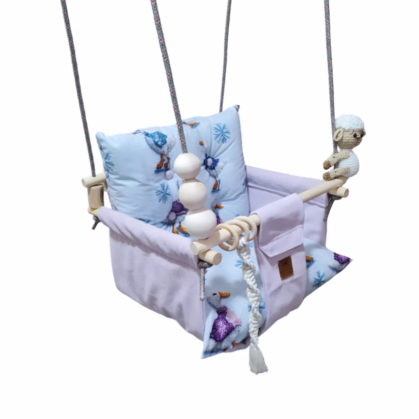 تاب کودک ام دی سری مبله لاکچری مدل داکیدو، وسیله ای سرگرم کننده و جذاب برای کودکان در محیط خانه و فضای باز است. یکی از بهترین بازی ها برای بچه ها، تاب بازی در منزل است که باعث احساس آرامش و لذت کودکان میشود. (از این تاب میتوانید در فضای باز و طبیعت هم استفاده کنید.) این تاب قابل نصب به میله بارفیکس و یا بست های سقفی می باشد. پارچه ی استفاده شده در این محصول(بنده اصلی) از نوع پارچههای با کیفیت مبلی ترک (تمام نخ – ضد آلرژی) و برای (تشکچه ها) از جنس مخمل پورشه با طراحی ۳ بعدی می باشد، همچنین از چوب طبیعی روسی باکیفیت بدون لبه های تیز استفاده شده است. فضای نشیمن کودک داخل تاب حدود 40 سانت در 40 سانت است وزن قابل تحمل تاب ام دی ۴۵ کیلوگرم می باشد و مناسب همه کودکانی که توانایی نشستن را دارند می باشد. هچنین سهولت در نشستن کودک قسمت کوسن پشتی به وسیله دو دکمه به بدنه اصلی متصل شده است. در بستهی این محصول به جهت سرگرم شدن کودک آویز هایی از مغز تنه درختان و عروسک زیبایی که کار دست می باشد تعبیه شده است. این تاب به صورت مونتاژ شده و در کاور مخصوص برای مشتریان عزیز ارسال می گردد.