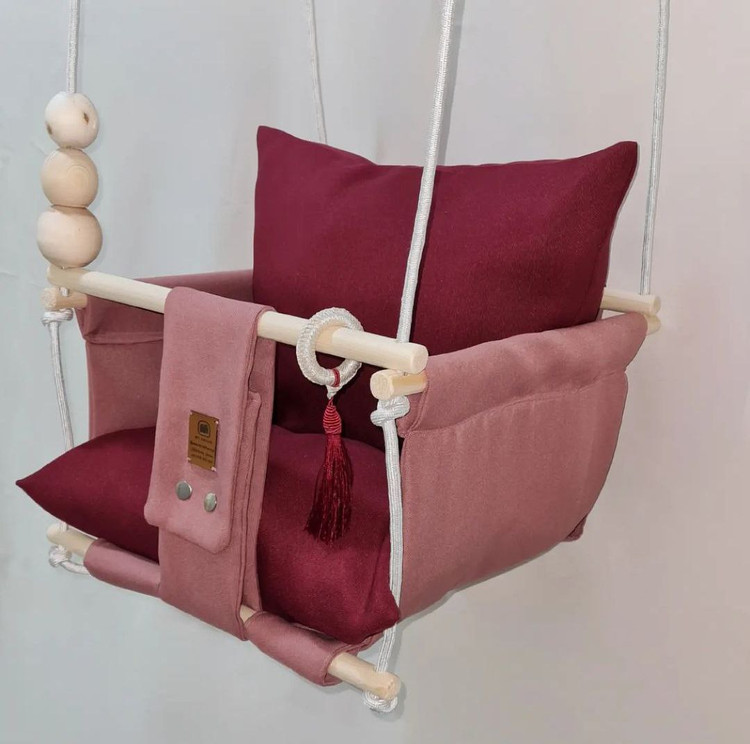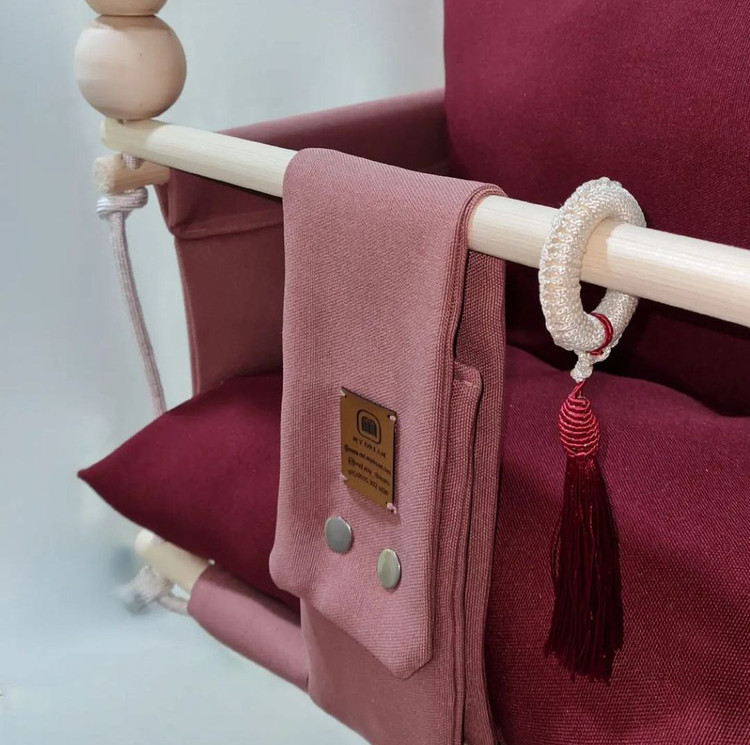 تاب کودک ام دی سری مبله کامل مدل آیلین، وسیله ای سرگرم کننده و جذاب برای کودکان در محیط خانه و فضای باز است. یکی از بهترین بازی ها برای بچه ها، تاب بازی در منزل است که باعث احساس آرامش و لذت کودکان میشود. (از این تاب میتوانید در فضای باز و طبیعت هم استفاده کنید.) این تاب قابل نصب به میله بارفیکس و یا بست های سقفی می باشد. پارچه ی استفاده شده در این محصول از نوع پارچههای با کیفیت مبلی ترک (تمام نخ – ضد آلرژی) برای بدنه اصلی و پارچه مبلی ترک برای تشکچه ها می باشد؛ همچنین از چوب طبیعی روسی باکیفیت بدون لبه های تیز استفاده شده است. فضای نشیمن کودک داخل تاب حدود 40 سانت در 40 سانت است وزن قابل تحمل تاب ام دی 35 کیلوگرم می باشد و مناسب همه کودکانی که توانایی نشستن را دارند می باشد. هچنین سهولت در نشستن کودک قسمت کوسن پشتی به وسیله دکمه ای به بدنه اصلی متصل شده است و هر دو تشکچه به جهت شستشوی راحت تر دارای زیپ هستند. در بستهی این محصول به جهت سرگرم شدن کودک آویز هایی از مغز تنه درختان قرار داده شده است. این تاب به صورت مونتاژ شده و در کاور مخصوص برای مشتریان عزیز ارسال می گردد.